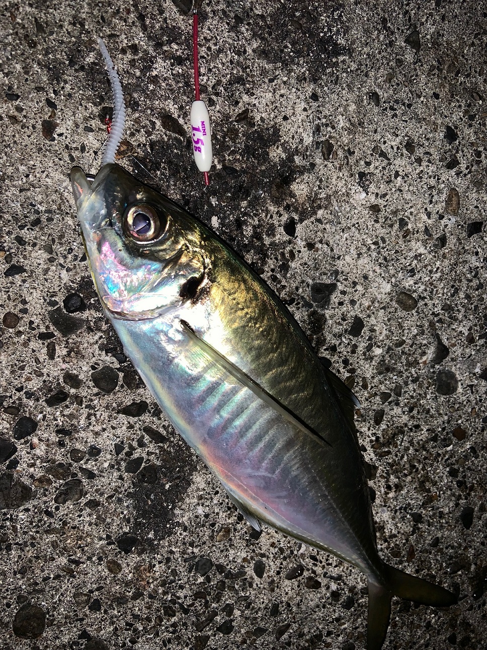 ライズの周辺にキャストして表層を巻くと良型のアジ!